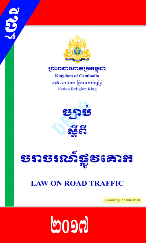 ច្បាប់ស្តីពីចរាចរណ៍ផ្លូវគោក(ថ្មី) 1.0
