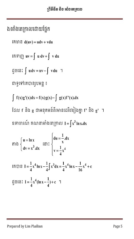 នេះគឺជាកម្មវិធីទាក់ទងនិងគណិតវិទ្យា ជាសៀវភៅព្រីមីទីវ និង អាំងតេក្រាល ថ្នាក់ទី១២ ដែលបានរៀបចំឡើងជាមួយទូរស័ព្ទ