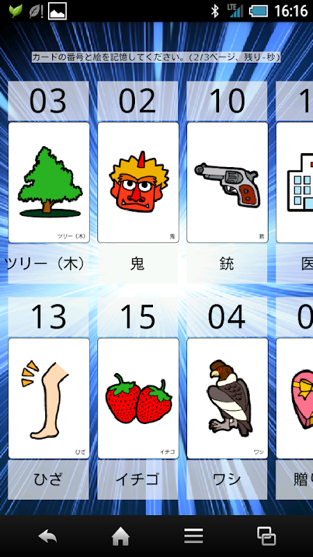 1.画面に表示される数字,記号,画像をイメージで覚えたり、暗算したりして脳を鍛えます。繰り返しのトレーニングで、記憶力がアップするトレーニング内容になっております。