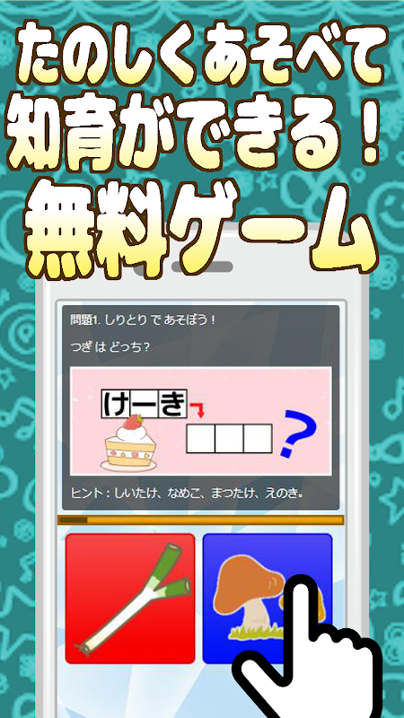 子供にやさしいしりとりアプリ登場!簡単操作で動物や物のなまえをおぼえよう!!たのしく遊んでちいさな子供の知育ができる無料のアプリ。