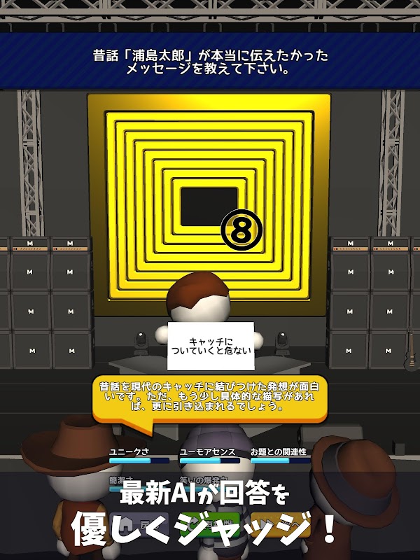Krótkie wyjaśnienie Najnowsza sztuczna inteligencja ocenia Twojego Ogiri! Rozwiń swój śmiech i kreatywność, rozwiązując ponad 600 różnych pytań! Celuj w „odpowiedź Boga” z doskonałym wynikiem 10!