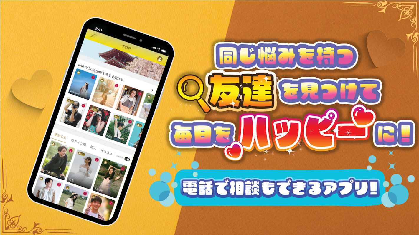 ビデオや電話、お悩み掲示板でフレンド作りもできる-スッキリン