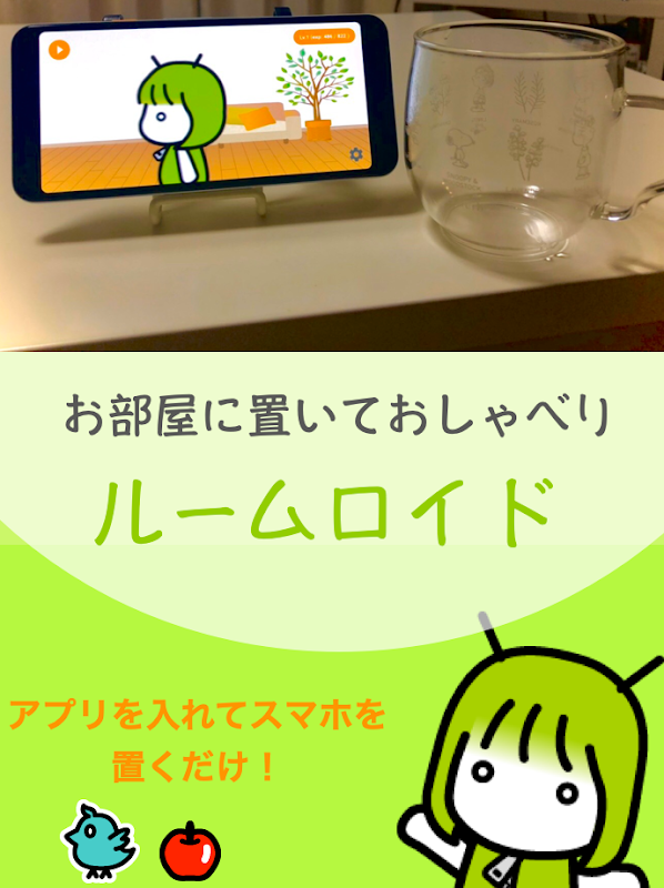 ドロイドちゃんというキャラクターが、挨拶、雑談、愚痴など様々な話しかけに対して声で返答してくれます。