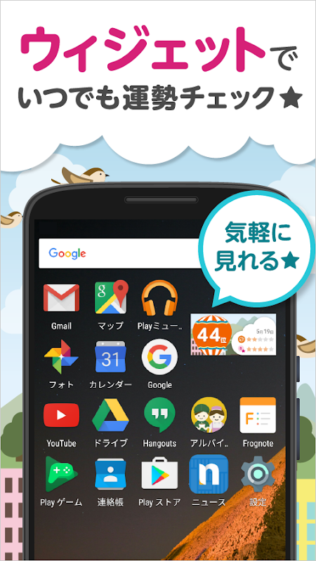 アプリを起動しなくても、ホーム画面で運勢がわかるウィジェットを搭載!