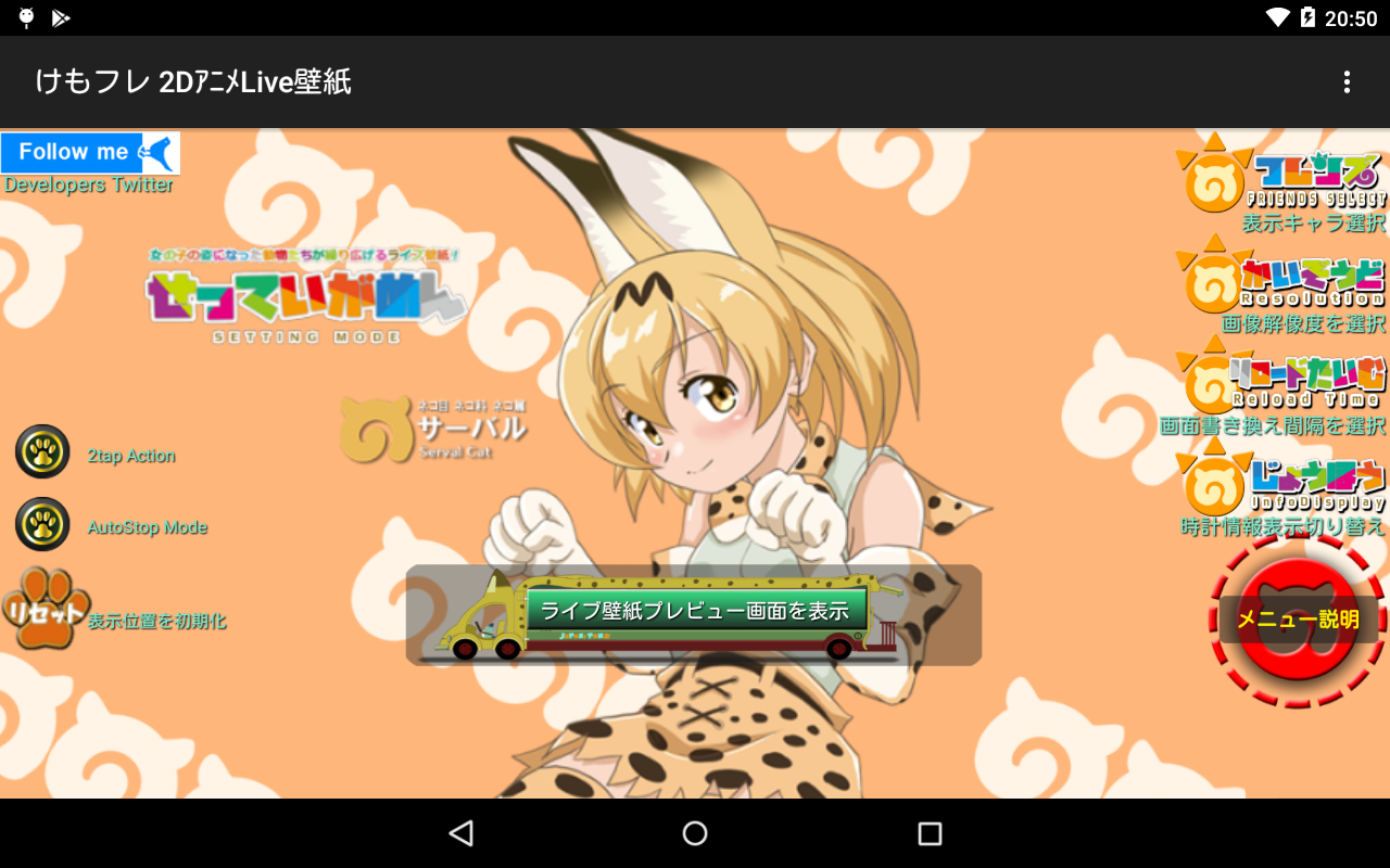 Jest to wtórne tworzenie aplikacji na żywo tapety z „Przyjaciół” bestii. Serwal-chan wyświetlane na ekranie gotowości smartphone będzie animacja w Live2D.