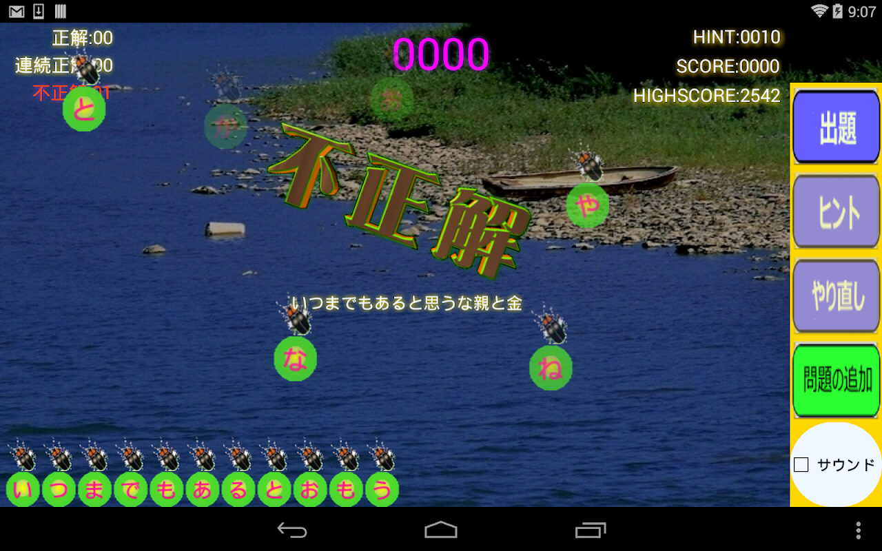 また、ヒントを使わずに正解を3回連続すると、不正解回数が1回減り、得点に100点加算されます。