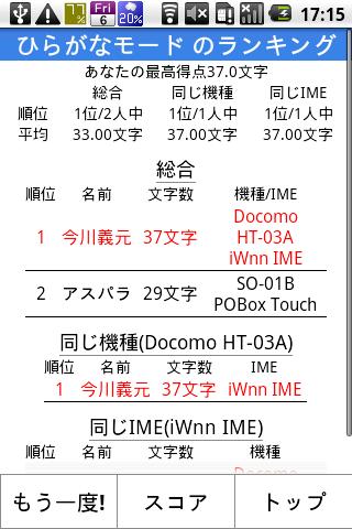 ※長文モードは、問題によってはIMEの入力候補を使用することで、簡単に高得点が狙えてしまうので、平均点でのランキングとなっています。それ以外は最高得点でのランキングです。