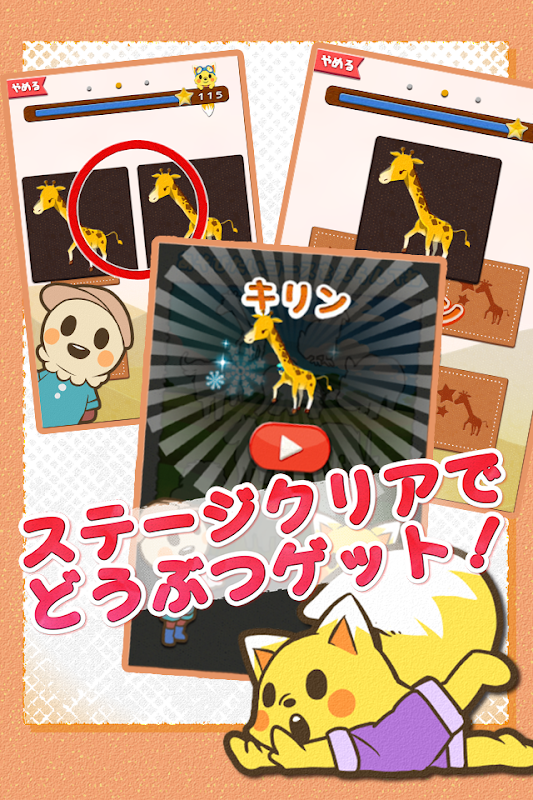 ・ステージクリアすると、動物が登場し「おめでとう」と、ほめます。<
