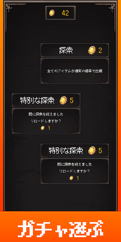 ②探索は特別な探索があるぞ!!特定のアイテムが出やすくなったり出にくくなったりするぞ!!使いこなしてドット絵のアイテムコンプリートを目指そう!!