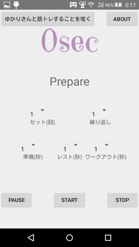 シンプルな筋トレタイマーです。ゆかりさんがアナウンスしてくれます。