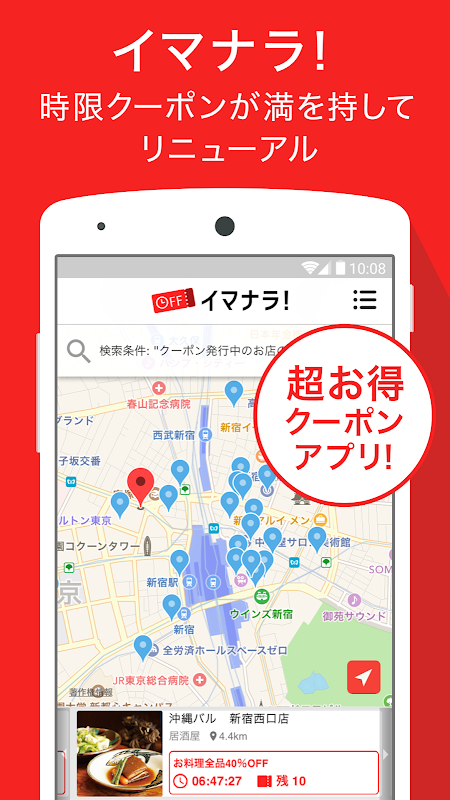 イマナラ!は、あなたの周辺で「今だけ」発行されている時限クーポンを「その場で」検索できる、時間限定・枚数限定の時限クーポン サービスです。