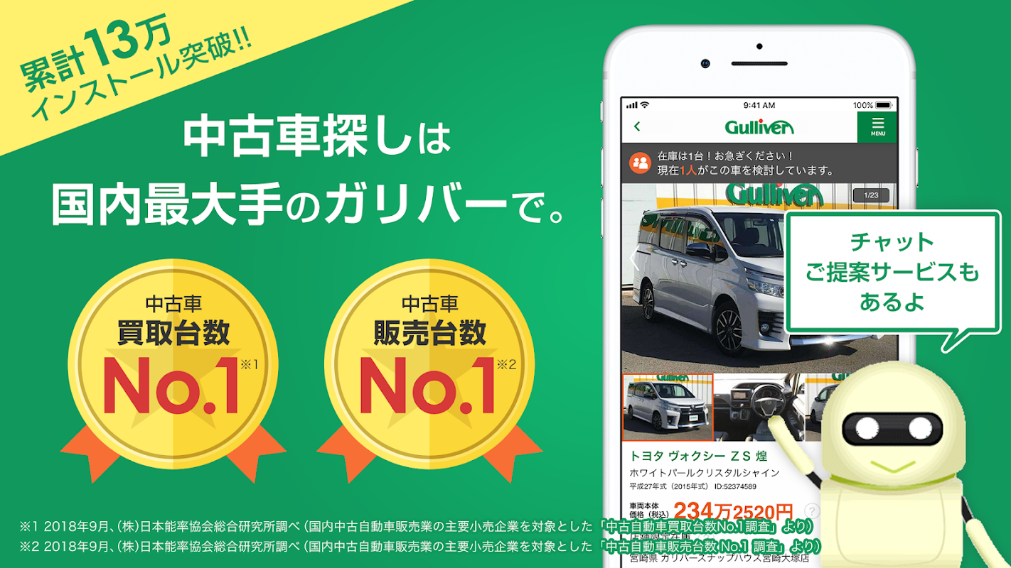 ※1 2018年9月 (株)日本能率協会総合研究所調べ(国内中古自動車販売業の主要小売企業を対象とした「中古自動車販売台数No.1調査」より)