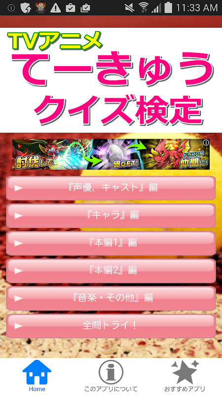 アニメで大人気の『てーきゅう』のクイズアプリです。