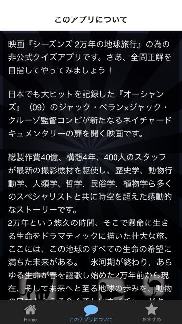 Jest to nieformalna aplikacja quizu dla filmu "sezonów Ziemi podróży 20.000 lat." Chodź, niech robi cel wszystkich pytań poprawna odpowiedź!