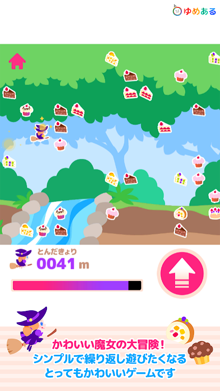 魔女(プレイヤー)は自動で前進するので、ボタンを押して高さのコントロールをするだけの簡単操作です。