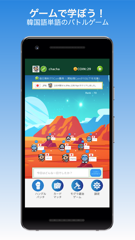 ・ Rywalizuj z użytkownikami z całego świata o słownictwo koreańskie!