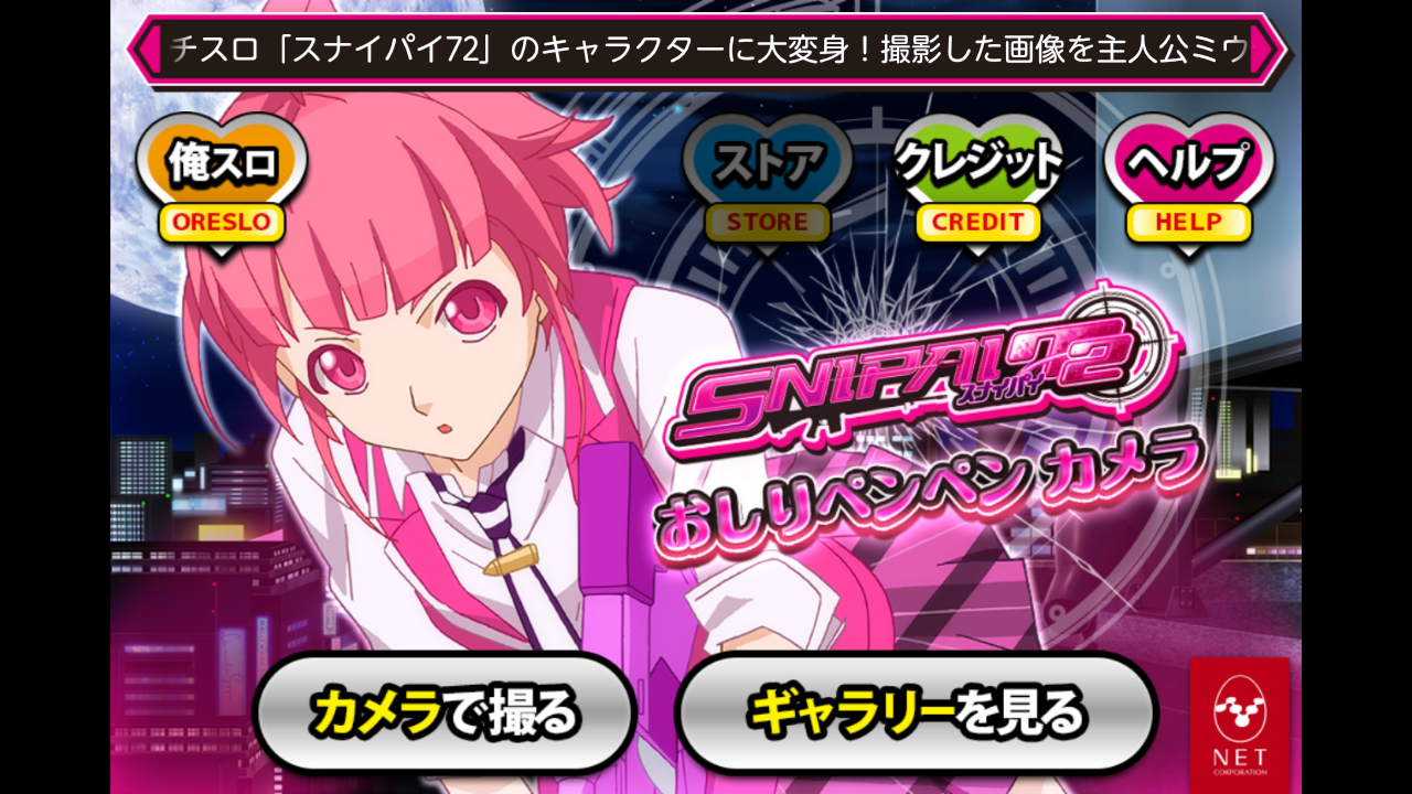 大人気パチスロ「スナイパイ72」のキャラクターに大変身!撮影した画像を主人公ミウやセバスチャン、らむね等の「スナイパイ72」登場キャラに貼りつけて遊べます!