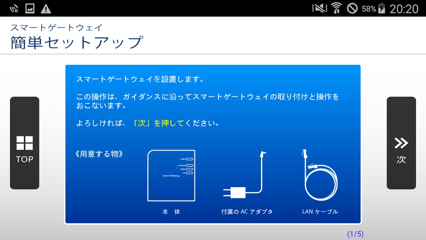 スマートゲートウェイの初期設定時に行う、以下の操作をアプリにてガイドします。
