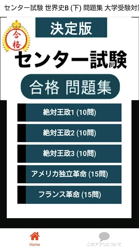 センター試験に要求される知識をクイズ形式で挑戦!絶対王政〜フランス革命にかけて出題です合格に必要な重要問題を厳選してます知識の総チェック&弱点克服に最適!