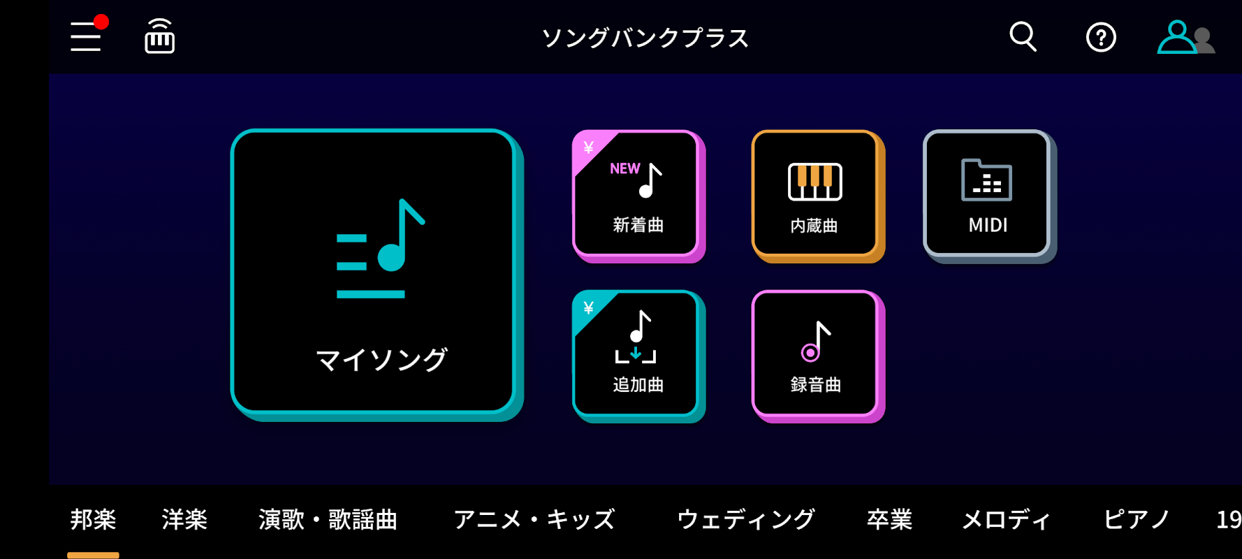 „Song Bank Plus” oferuje szeroki wybór utworów, w tym hity muzyki zachodniej i japońskiej oraz utwory fortepianowe. Dostępne są dwa tryby wyświetlania ekranu.