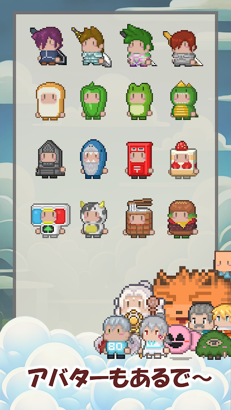 Ciesz się nostalgicznym klimatem retro RPG z postaciami, potworami, wyposażeniem i przedmiotami wyrażonymi w pikselowej sztuce.