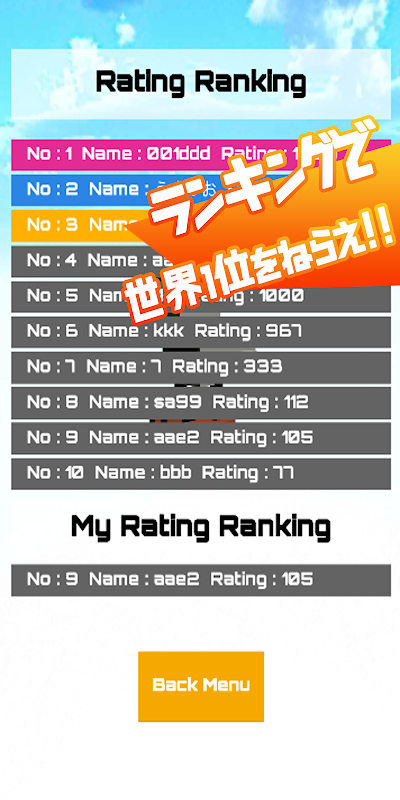 Ratingを伸ばして、世界ランキング1位を目指そう!!