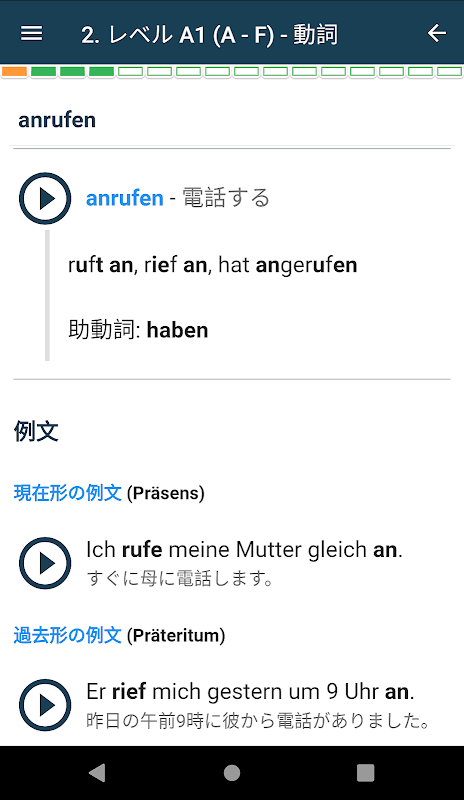 Aplikacja Niemieckie czasowniki nieregularne zawiera ponad 50 lekcji, ponad 1200 słów w słowniku i 600 przykładowych zdań z użyciem czasowników. Zawiera ponad 200 grafik, około 1400 dźwięków i 320 ćwiczeń, w tym „dopasowywanie słów” i „organizację zdań”. Idealny do nauki języka niemieckiego. Rozpocznij swoją przygodę z nauką języka już dziś!