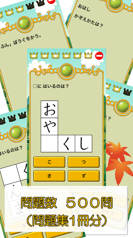 小学校1年生の国語アプリの決定版!小学校での学習の進み具合に合わせて単元を選択し、手軽に、効果的に復習することができます。サクサクと4択で問題を解いていくことができます。