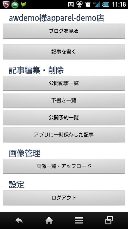 アパレルウェブ ブログポータル専用投稿アプリケーションです。引き続きメールからの記事投稿対応も可能ですが、新たにアプリケーションからブログ記事の投稿や編集を行えるようになりました。トップページにIDとパスワードの他、企業IDを入力する事で個別の管理画面に入る事が出来ます。