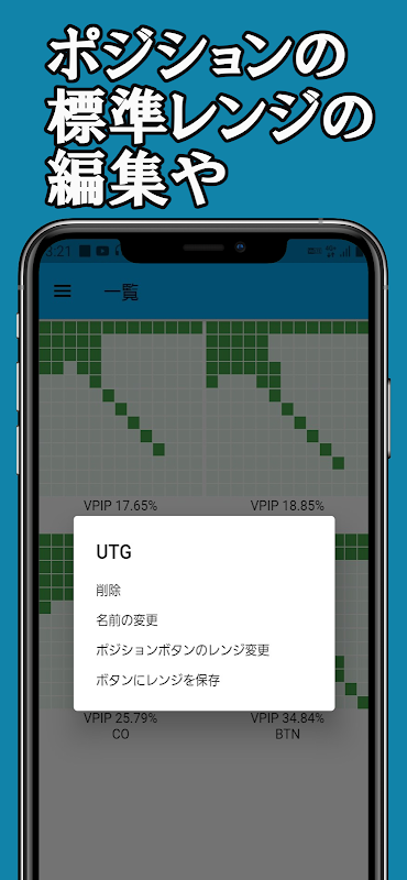 このアプリでは、自分で相手のプリフロップハンドレンジを作成・保存し、エクイティの計算ができたり、そのレンジがあるボードに対してそれぞれの役がどのくらいの確率でできるかを計算します。