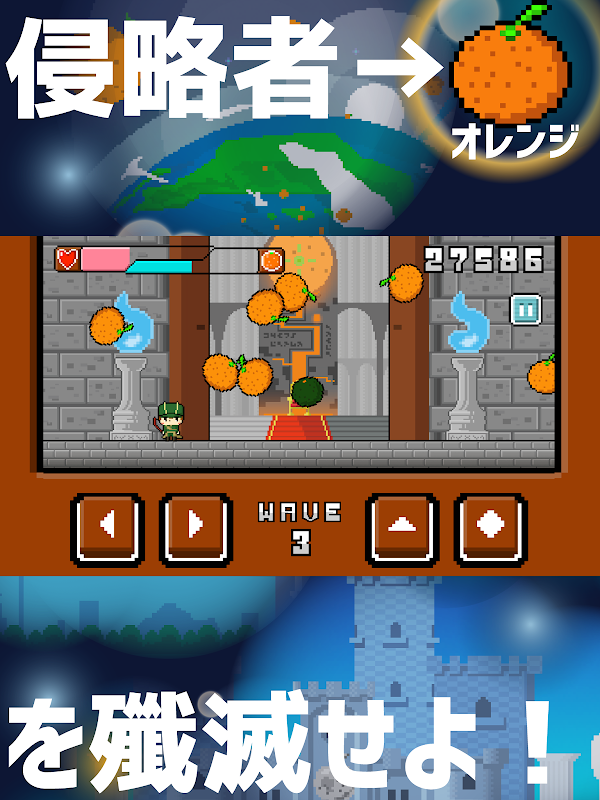 プレイヤーは降り注ぐシンリャクシャとみかんをかいくぐり、
