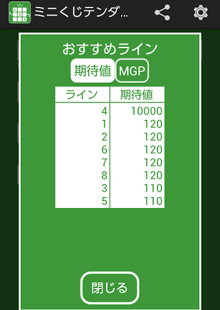 ラインの数字[1]をタッチするとそのラインのMGPの確率詳細がみれます。
