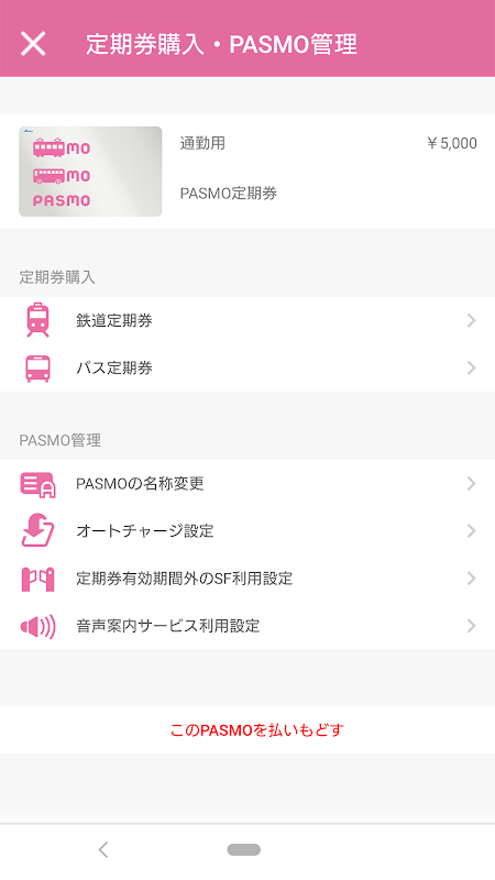 Instalując aplikację mobilną PASMO na kompatybilnych terminalach, mobilna PASMO będzie mogła korzystać z pociągów i autobusów, robić zakupy za pieniądze elektroniczne oraz korzystać z następujących usług, podobnie jak obecna karta PASMO. Ty