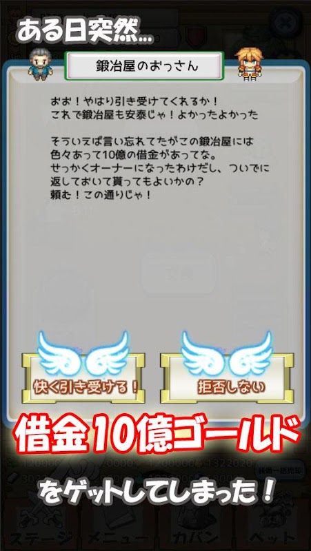 Pewnego dnia protagonista musi walczyć o spłatę długu w wysokości 1 miliarda złota!
