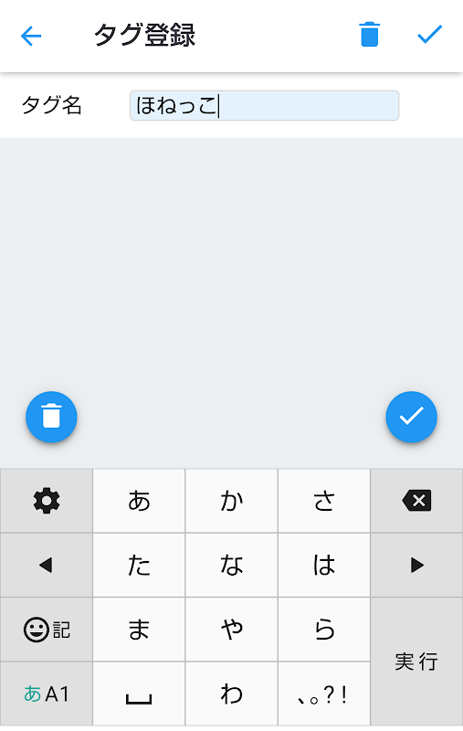 (7) Na ekranie rejestracji tagu wprowadź nazwę tagu i dotknij przycisku (zaznacz) w prawym górnym lub prawym dolnym rogu ekranu, aby zarejestrować tag.