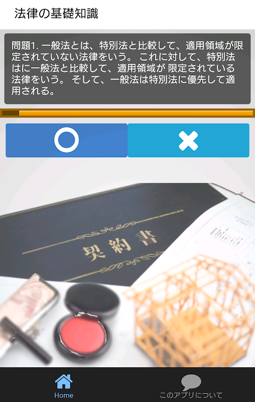 ビジネス実務法務検定3級の試験対策一問一答形式の問題集です。頻繁に出題された過去問題を中心に330問収録し、解説も充実したアプリです。