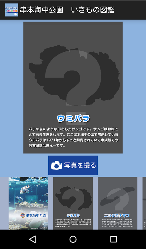 【串本海中公園公式】串本海中公園がアプリになりました!!館内の生き物たちを写真におさめ、自分だけのオリジナルいきもの図鑑を完成させよう!