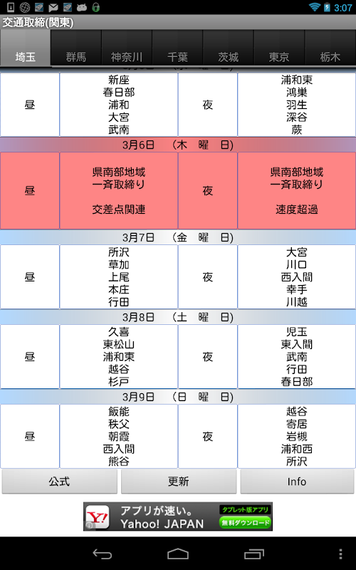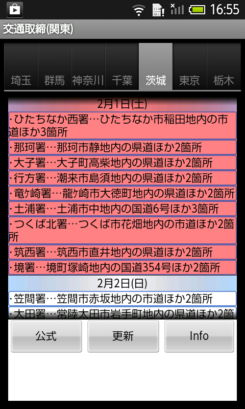 関東エリア(埼玉県、神奈川県、千葉県、東京都、栃木県)の公開交通取締情報を確認するアプリです。