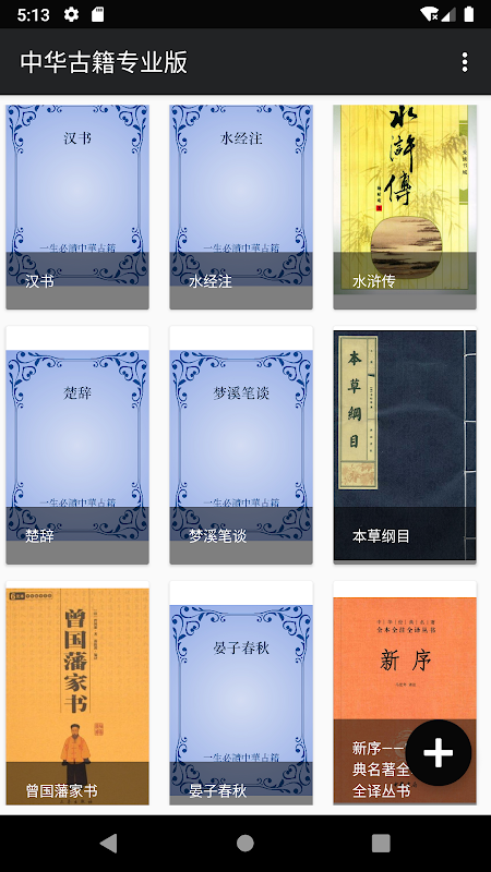 《商 书》,《政论-昌言》,《中庸》,《六韬》,《列子》,《反经》,《史记》,《周易》,《国语》,《墨子》,《孟子》,《左传》,《庄子》,《新序》,《楚辞》,《汉书》,《管子》,《老子》,《荀子》,《论语》,《诗品》,《诗经》,《道枢》,《礼记·孝经》,《茶经·随园食单》,《三国志》,《人物志》,《全宋词》,《千家诗》,《后汉书》,《商君书》,《太平经》,《孔丛子》,《山海经》,《战国策》,《搜神记》,《水浒传》,《水经注》,《淮南子》,《红楼梦》,《菜根谭》,《西游记》,《道德经》,《韩非子》,《鬼谷子》,《金刚经·心经·坛经》,《地藏经·药师经》,《西厢记·窦娥冤》,《三字经·百家姓千字文·弟子规》,《三国演义》,《世说新语》,《乐府诗集》,《了凡四训》,《人间词话》,《古文观止》,《吕氏春秋》,《四书五经》,《围炉夜话》,《大学中庸》,《孔子家语》,《孙子兵法》,《小窗幽记》,《晏子春秋》,《本草纲目》,《梦溪笔谈》,《纳兰词集》,《聊斋志异》,《贞观政要》,《资治通鉴》,《闲情偶寄》,《陶庵梦忆》,《随园诗话》,《颜氏家训》,《鲁迅文集》,《黄帝内经》,《孙子兵法·三十六计》,《元曲三百首》,《周易参同契》,《唐诗三百首》,《子不语译注》,《宋词三百首》,《徐霞客游记》,《曾国藩家书》,《群书治要译》,《古诗十九首·玉台新咏》,《九章算术译注》,《古列女传译注》,《吴越春秋译注》,《四書章句集註》,《文心雕龙译注》,《沧浪诗话评注》,《西京杂记译注》,《西湖梦寻评注》,《阅微草堂笔记》,《东京梦华录译注》,《宋论(上下册)》,《金瓶梅词话(梦梅馆校本)》