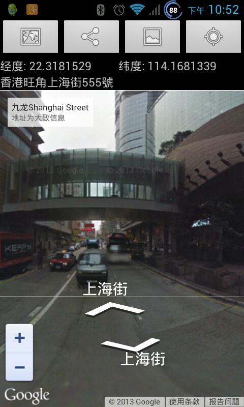 当你按下时,若此地有街景数据时,便会显示街景照片。(如图八)