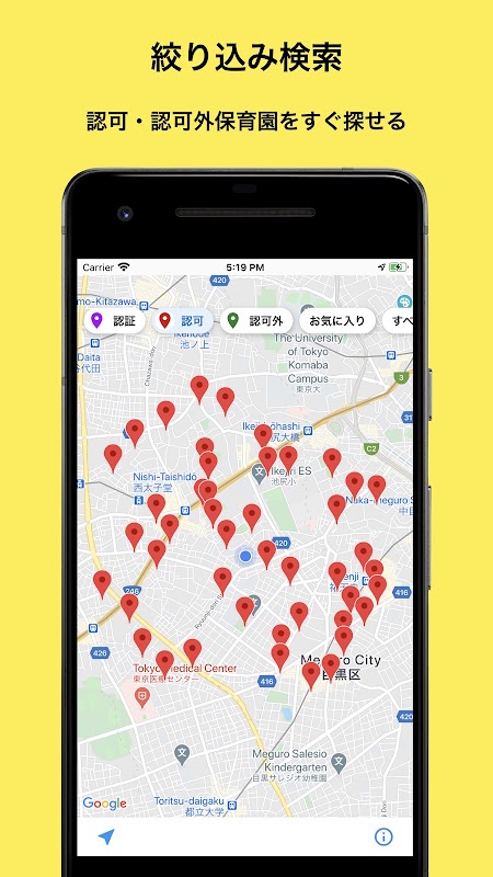 Możesz natychmiast zobaczyć certyfikowane / licencjonowane / nielicencjonowane przedszkola w pobliżu Twojej bieżącej lokalizacji