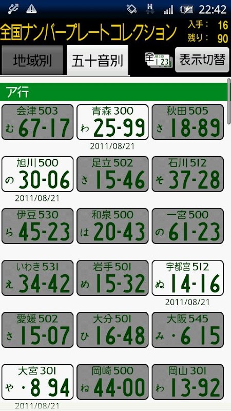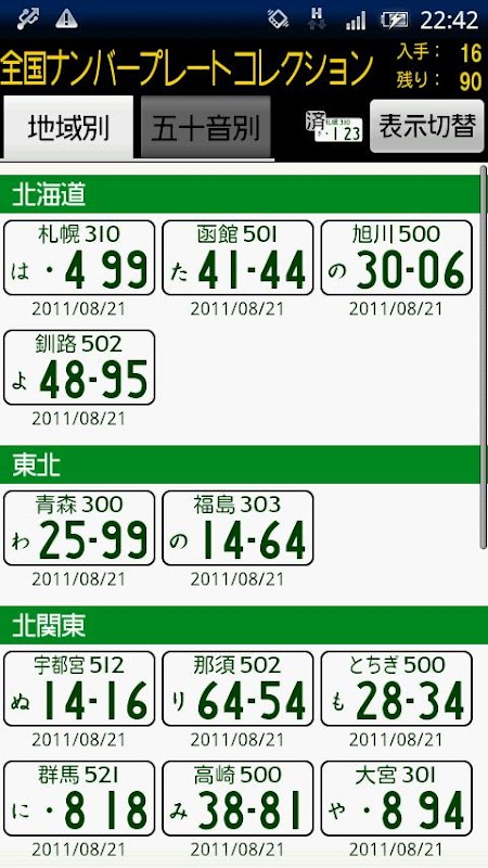 「全国ナンバープレートコレクション」は、ナンバープレートの地名を収集するAndroidアプリです。