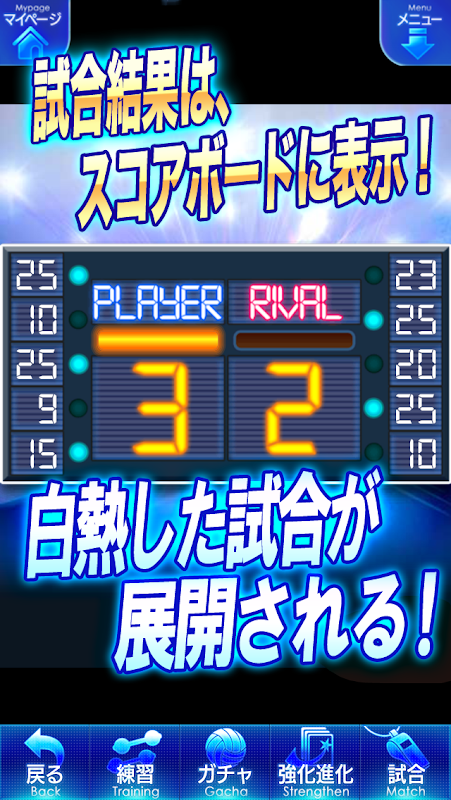 選手カードを集めて、『練習」や『試合』で強化Ptを貯めれば