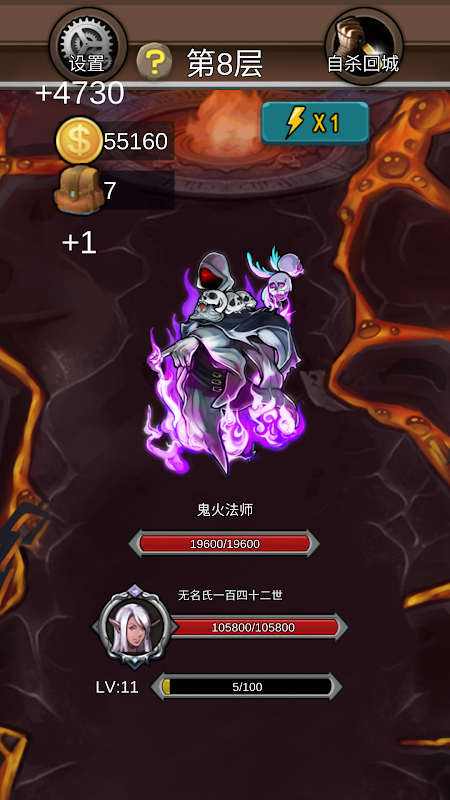 这是一个刷刷刷类型的放置爬塔游戏,只需要进入关卡,勇者会自动进行攻击。你只需收拾一下背包,给勇者换一身装备就可以让他再次上路了。