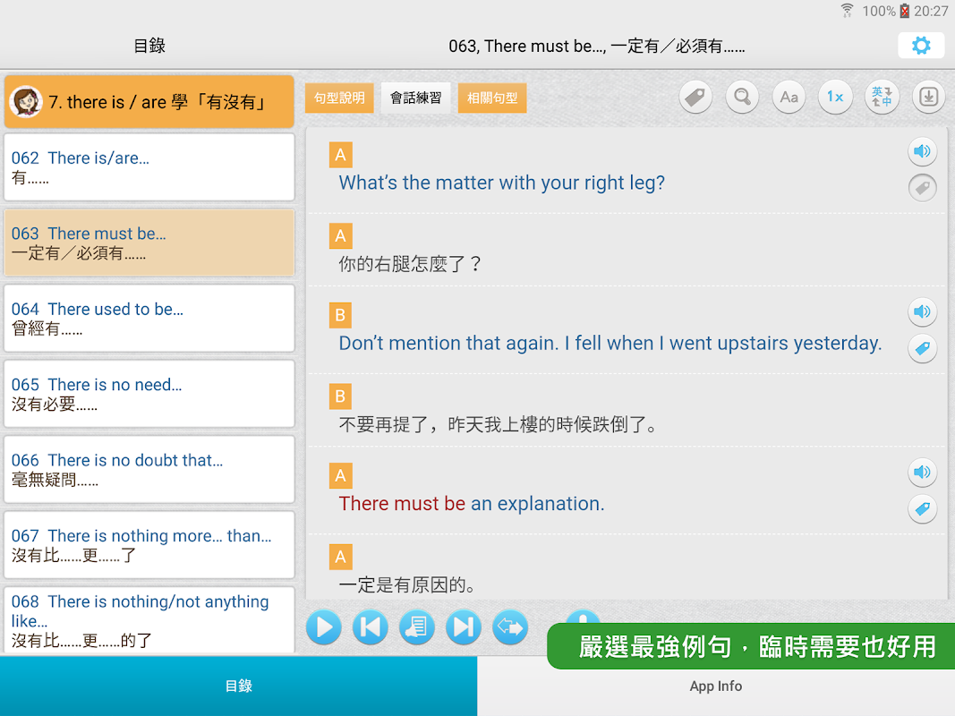 名師嚴選的好用句型,將英文句型分解念出,讓你不必看書也能學習萬用英語句型。並同時收錄全部例句和對話。邊聽邊學,大家都在用的那句話,你也能輕鬆開口說!