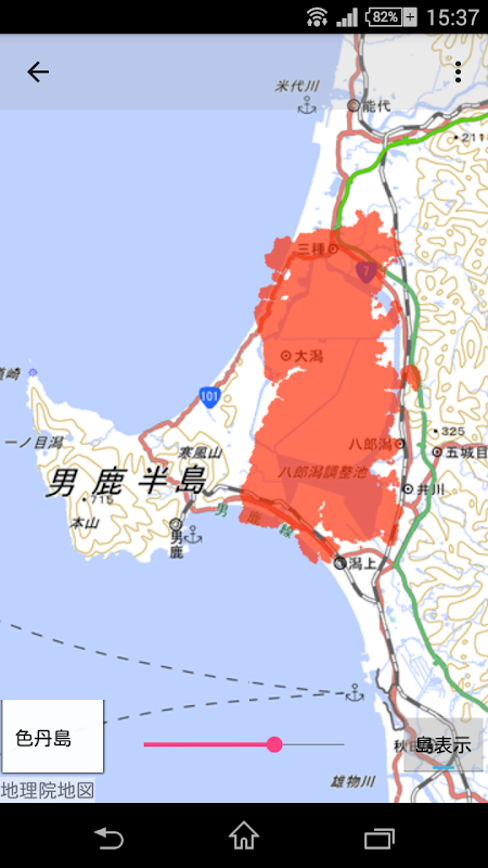 ● ベース地図は国土地理院の白地図または標準地図(*)を選択できます(地図の取得にインターネットアクセスが必要です)
