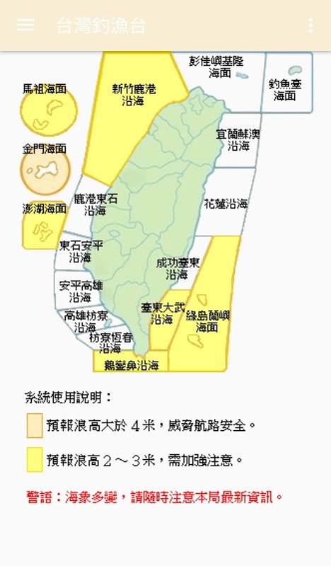 Wędkarstwo i rybactwo zapewnić użytkownikom informacje dostarczane Taiwan przybrzeżnej informacji morsa i pogody