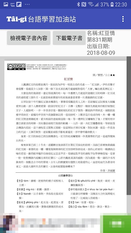 (6)當玩家答對題目時,系統會出現答對畫面,顯示該臺語語詞的詳細解說及語音。