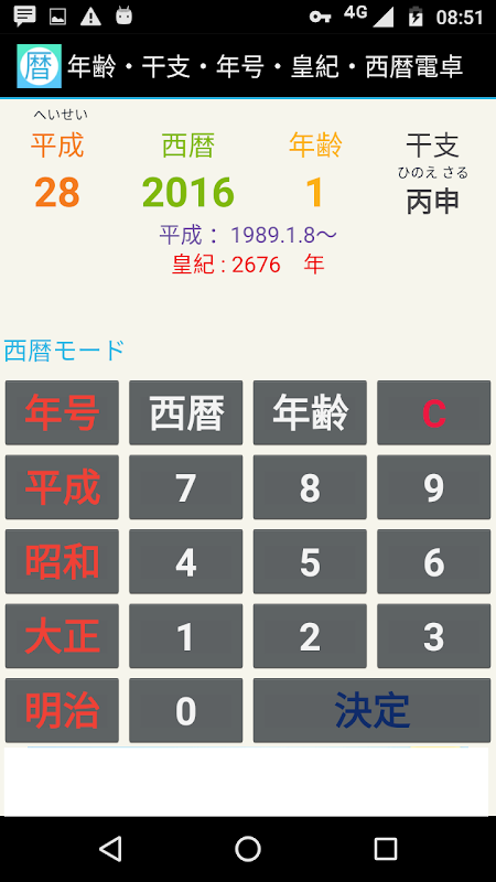 和暦・年齢・干支・年号・皇紀・西暦電卓 3.8