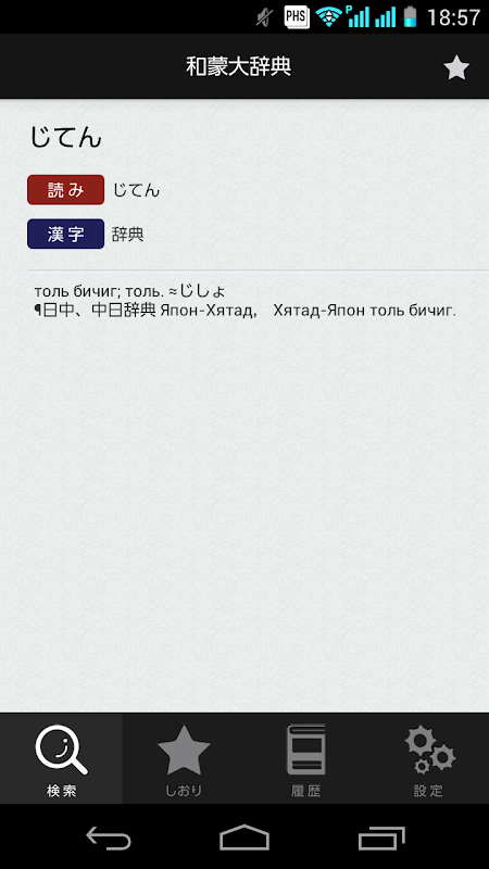 見やすい、引きやすい、わかりやすい 7万語以上の単語を含む日本語からモンゴル語への辞典検索や例文からの全文検索が可能な電子辞典です。